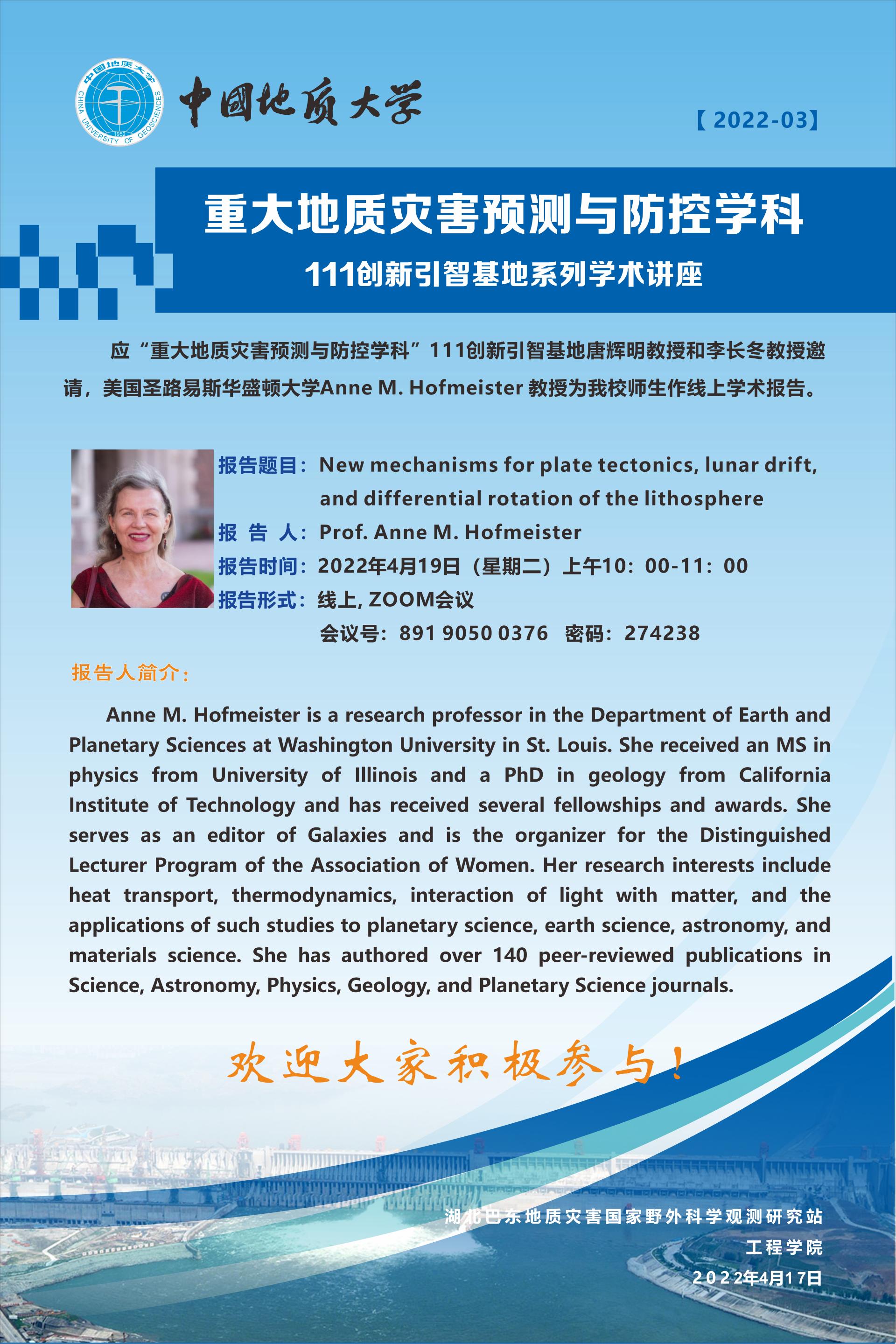 重大地质灾害预测与防控学科---111创新引智基地系列学术讲座2022-03