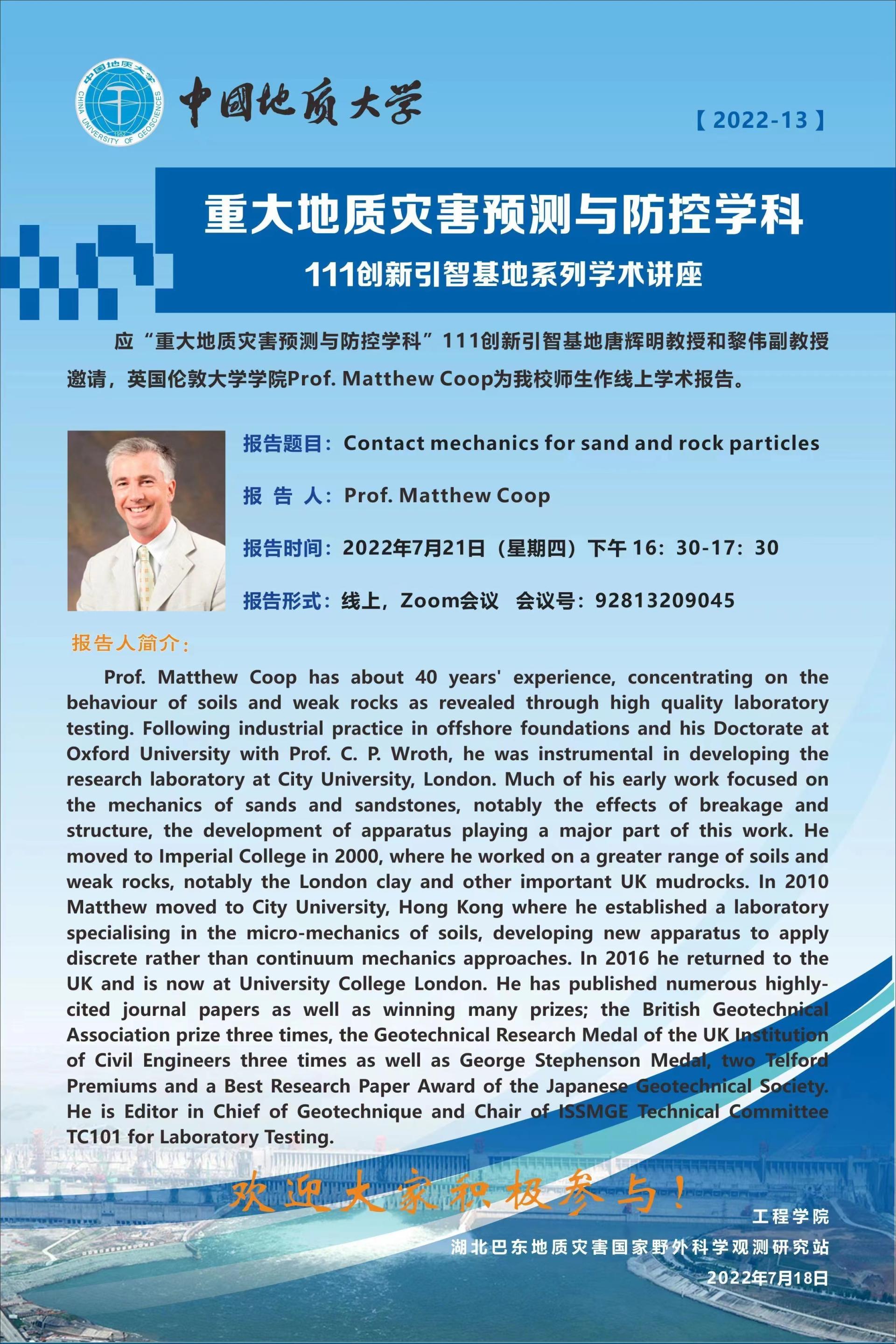 重大地质灾害预测与防控学科---111创新引智基地系列学术讲座2022-13