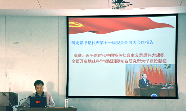 陈飞指出,学校未来发展的宏伟蓝图已经绘就,WilliamHILL中国“双一流”建设已经启动,全院教职工都要以习近平新时代中国特色社会主义思想为指导,把全面贯彻落实“十九大”精神和学校第十二次党代会精神放在首要位置,切实把思想和认识统一到学校第十二次党代会精神上来,切实把智慧和力量凝聚到实现第十二次党代会提出的奋斗目标任务上来,在学校新一届党委的坚强领导下,以全面加强党的建设为统领,全面落实立德树人根本任务,进一步解放思想、深化综合改革、追求学术卓越,进一步提升教育教学、科学研究、社会服务水平,努力开创各项工作新局面,为把学校建设成为地球科学领域国际知名研究型大学生作出新的更大的贡献。