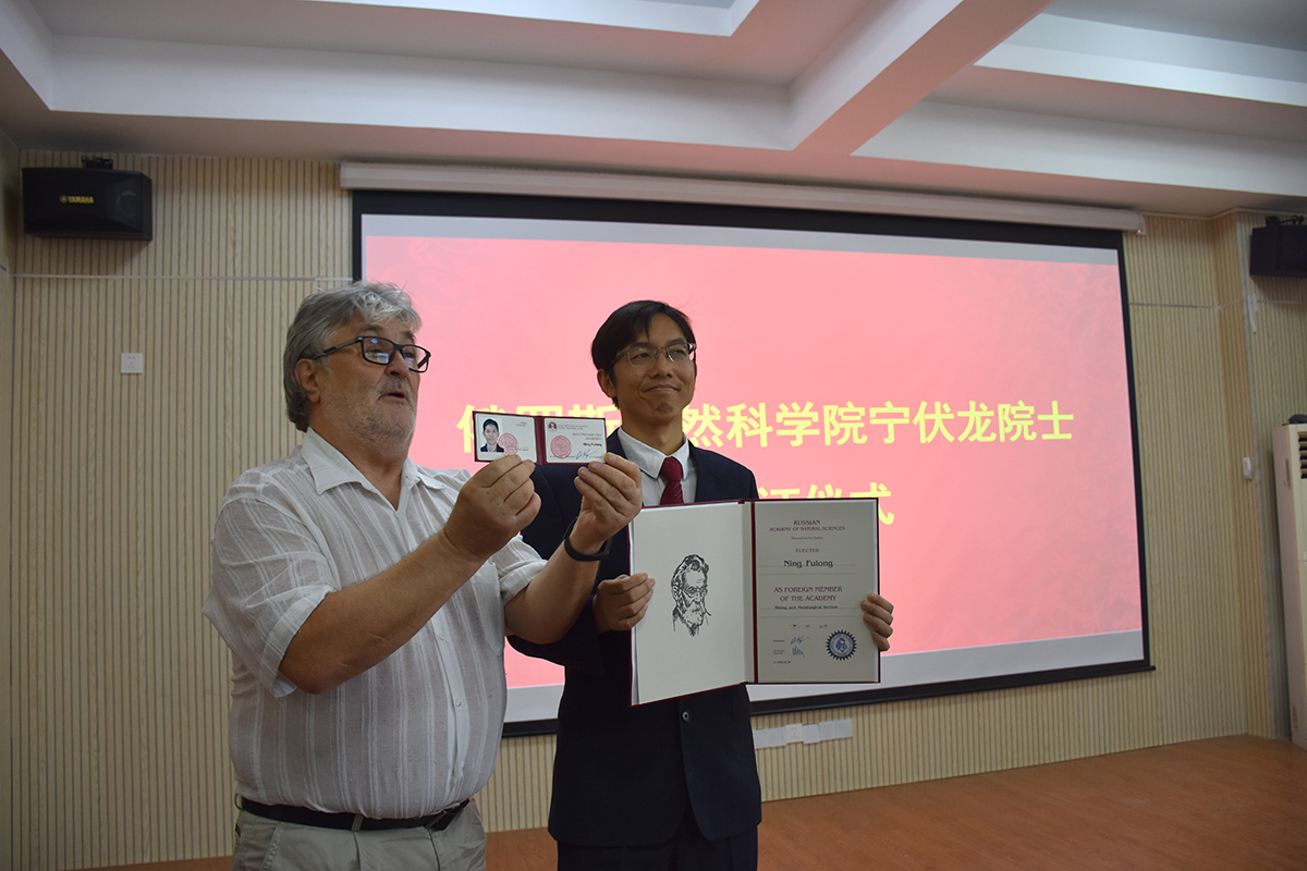 契霍特金教授为宁伏龙教授颁发院士荣誉证书