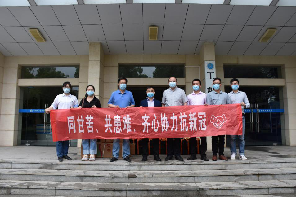 5月8日上午,上海华测导航技术股份有限公司湖北子公司总经理卢兴海、客户经理卢立飞一行向我院捐赠防疫物资,学院党委书记陈飞、党委副书记江广长签收物资并代表学院表示诚挚感谢。在学校统筹疫情防控和开学工作的关键时刻,上海华测导航技术股份有限公司主动与学院联系,捐赠疫情防控物资口罩3000枚、测温枪10支、PVC手套50双、大小喷壶80个、84消毒液40升、免洗消毒液104瓶。为学院有序推进师生复岗开学提供了丰富的物质保障。