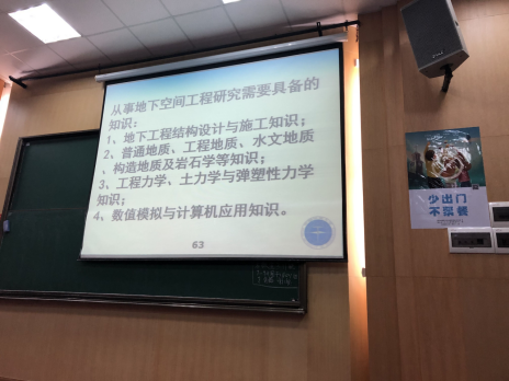 随后,陈建平老师与周传波老师分别结合研究方向、科研成果,深入浅出的向学生介绍学科特色。陈建平老师结合具体项目向同学们展示隧道实际施工中遇到的问题及解决办法,告知同学们从事地下工程研究所需要具备的知识,教导同学们悉心学习专业课程,提升自我能力。周传波老师结合科研实例与专业知识向同学们介绍了爆破技术的相关知识,举例说明了爆破工程中的突出问题,也向同学们揭示了爆破工程现有瓶颈。最后,他激励大家开拓眼界,扎实学习。