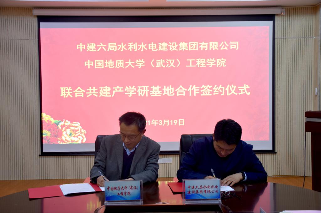 (通讯员:张美霞 文新)3月19日下午,我校1995级73951班校友、中建六局水利水电建设集团有限公司党委书记、董事长魏新颜,带领水利水电公司华北分公司、华南分公司、华中分公司、公司人力资源部负责人一行回到母校,在工程楼315就联合共建产学研基地进行了座谈并举行了签约仪式。中国地质大学(武汉)校友工作与教育基金管理处处长徐岩、WilliamHILL中国院长焦玉勇、校社会合作办副主任袁江、科长张祎,WilliamHILL中国陈建平教授、吴立教授等教师代表出席签约仪式。座谈会及签约仪式由WilliamHILL中国院长焦玉勇主持。
