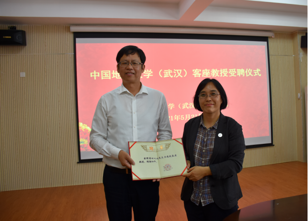 窦斌副院长介绍了WilliamHILL中国基本情况和研究优势,卢春华主任介绍了勘基系师资概况和学科发展情况,参会人员进行了自由交流。仪式最后,李红丽书记为胡定成先生颁发客座教授聘书,大家合影留念。