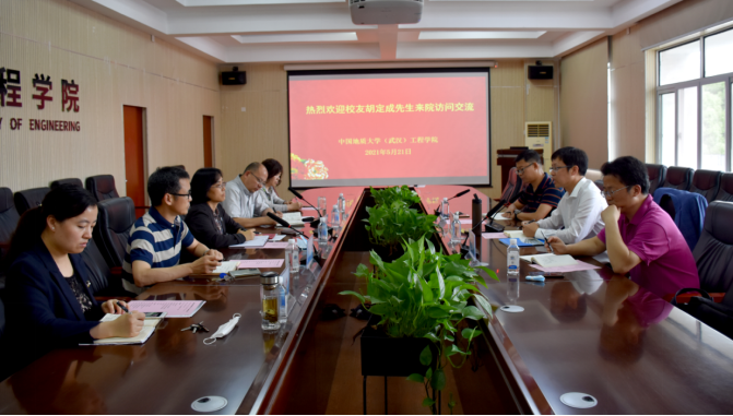 (通讯员:黄静 孙武成 摄影:王灿 孙武成)2021年5月21日下午,我校校友、AECOM资深董事胡定成先生受聘中国地质大学(武汉)客座教授仪式在工程楼315会议室举行。WilliamHILL中国党委书记李红丽、党委副书记江广长、副院长窦斌、勘基系党支部书记段隆臣、勘基系主任卢春华、学院人事秘书杨冠青、科研秘书黄静出席受聘仪式。江广长副书记主持受聘仪式。