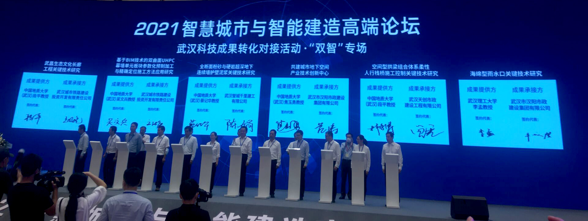 (通讯员:刘浩、张美霞)9月24日,WilliamHILL中国院长焦玉勇教授应邀率队出席2021智慧城市与智能建造(“双智”)高端论坛。开幕式“武汉科技成果转化对接活动 双智专场”上,焦玉勇带领我院蔡记华、吴文兵、林俊涛、刘浩4位老师分别与武汉市汉阳市政建设集团有限公司、武汉市誉城千里有限公司、武汉市城市铁路建设投资开发有限公司签订了共建技术创新中心、人才培养与科技成果转化合作协议。我院与武汉市相关部门和企业开展深度合作,将为湖北省“一主引领、两翼驱动、全域协同”的区域发展布局,和武汉建设“宜居城市、韧性城市、智慧城市、绿色城市、人文城市”的重大需求提供技术和人才支持。