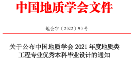 (通讯员 陈婵)近日,中国地质学会公布了2021年度地质类工程专业优秀本科毕业设计名单,本次全国共评选出16篇优秀本科毕业设计,全校有4篇毕业设计入选,我院入选2篇。