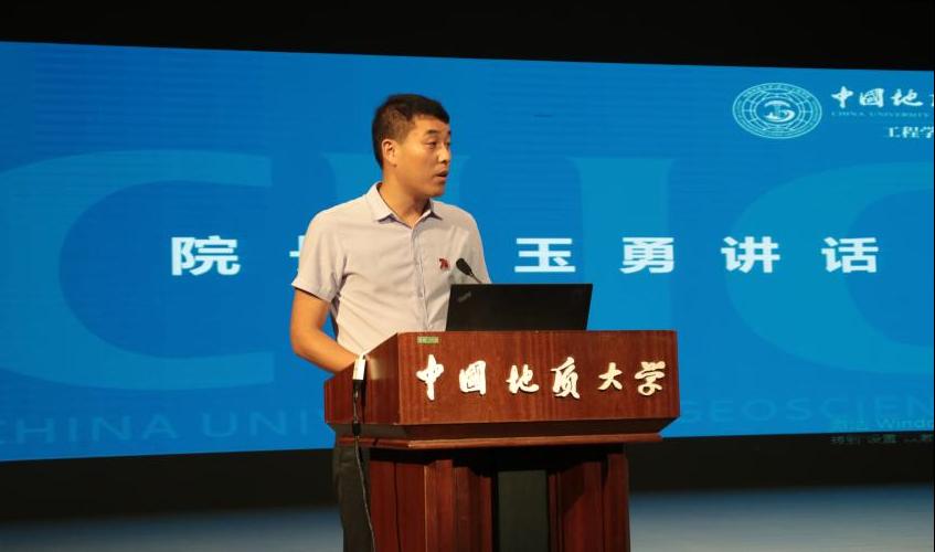 WilliamHILL中国院长焦玉勇教授发言。他指出,WilliamHILL中国是培养人才的重要阵地,七十年的厚积薄发,培养无数优秀学子、书写工程内涵。他强调,当今新时代面临着伟大变革,学子们要胸怀大志、秉持真理,不断拓宽视野,提升人文素养与科研能力;要立于当下,着眼未来,为攻克地质工程领域难题不懈奋斗、贡献力量;在求学之路上,要做良善之人、栋梁之材,培养完整人格,勇担时代使命。