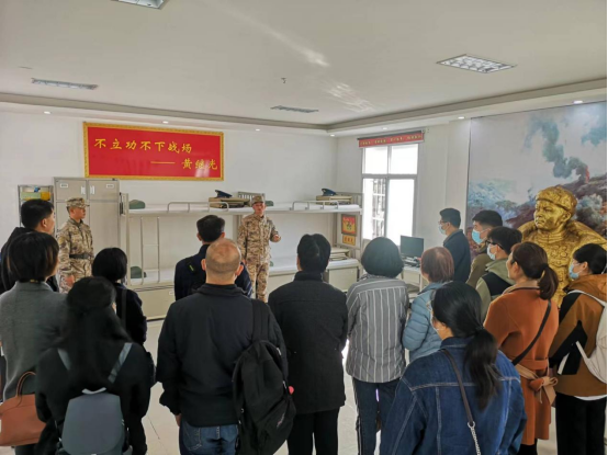 据悉,该部队系特级英雄黄继光生前所在部队,参加过黄麻起义、抗日战争、解放战争、抗美援朝等著名战役,诞生了黄继光、邱少云等家喻户晓的功臣模范。第十三届全国人大代表、全国新时代最美革命军人、现任该营政治教导员余海龙及该连连长廖永恒全程陪同,带领学院师生党员代表先后参观了该连黄继光班及黄继光连荣誉室,并详细介绍了特级英雄黄继光英勇献身的事迹及该连的光荣历史。