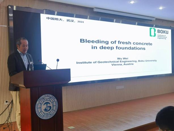 (通讯员 吴骏梓 叶阳)10月15日下午,应中国地质大学(武汉)唐辉明教授和刘清秉研究员邀请,维也纳自然资源与生命科学大学岩土工程研究所所长吴伟教授应邀作客“重大地质灾害预测与防控学科”111创新引智基地系列学术讲座。讲座由李长冬教授主持,王顺教授、窦杰研究员、崔德山副教授、顾东明特任教授、黎伟副教授、叶阳特任教授、张雅慧特任教授等50余名师生聆听了此次报告。