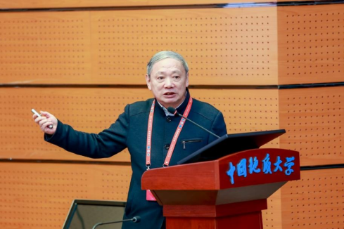 中国工程院院士、宁波大学杜时贵教授致辞。他深情追忆了自己在地大求学、工作期间与晏同珍先生接触所感受到的大师风范,表达了对先生的深切缅怀与崇高敬意。他号召与会学者以晏同珍先生为榜样,以纯粹的热爱与刻苦钻研在科学研究的道路上锐意进取,勇攀科学高峰,推动工程地质学科理论与实践取得新突破。
