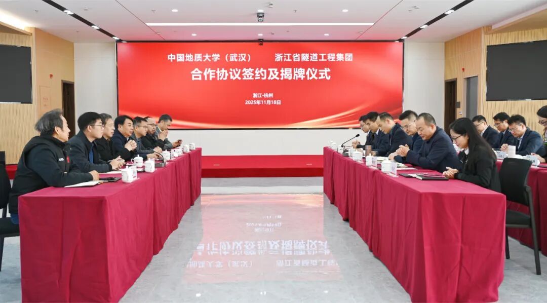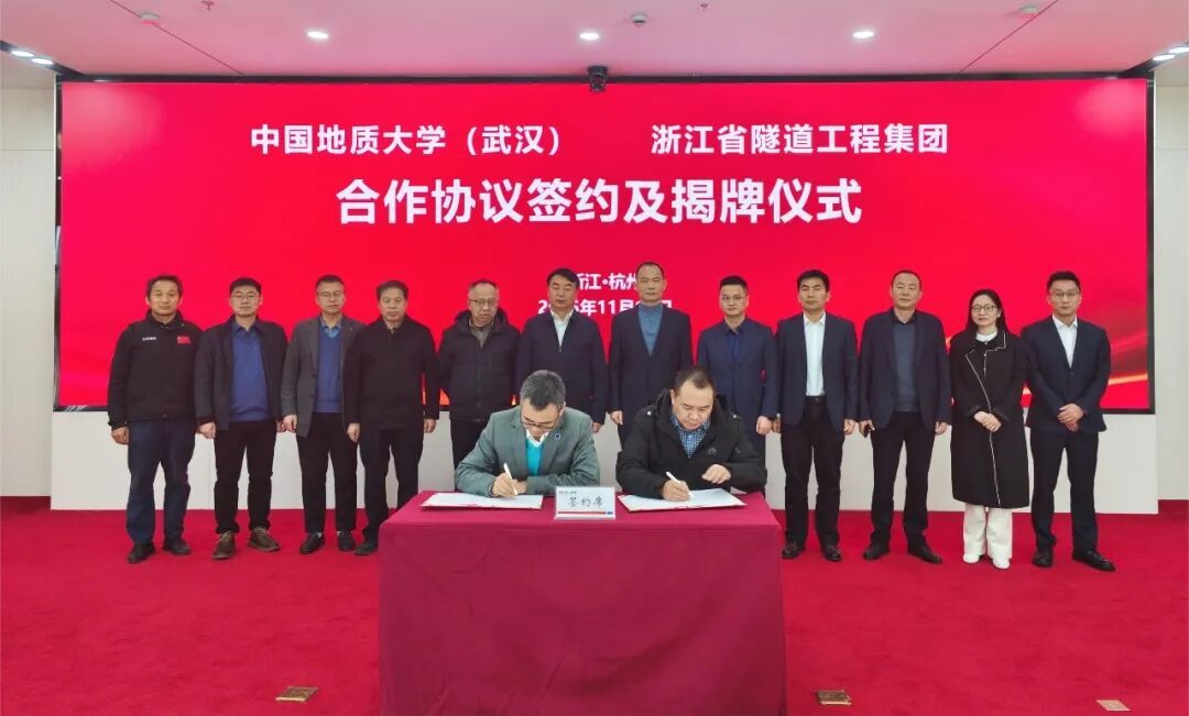 中国地质大学(武汉)与浙江省隧道工程集团有限公司正式签订《研究生联合培养基地合作协议》与《产学研合作协议》,举行了“研究生联合培养基地”和“地质e站”揭牌仪式,开启了校企合作新篇章。