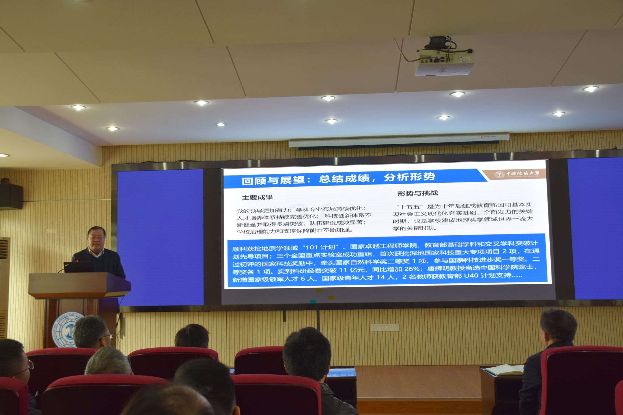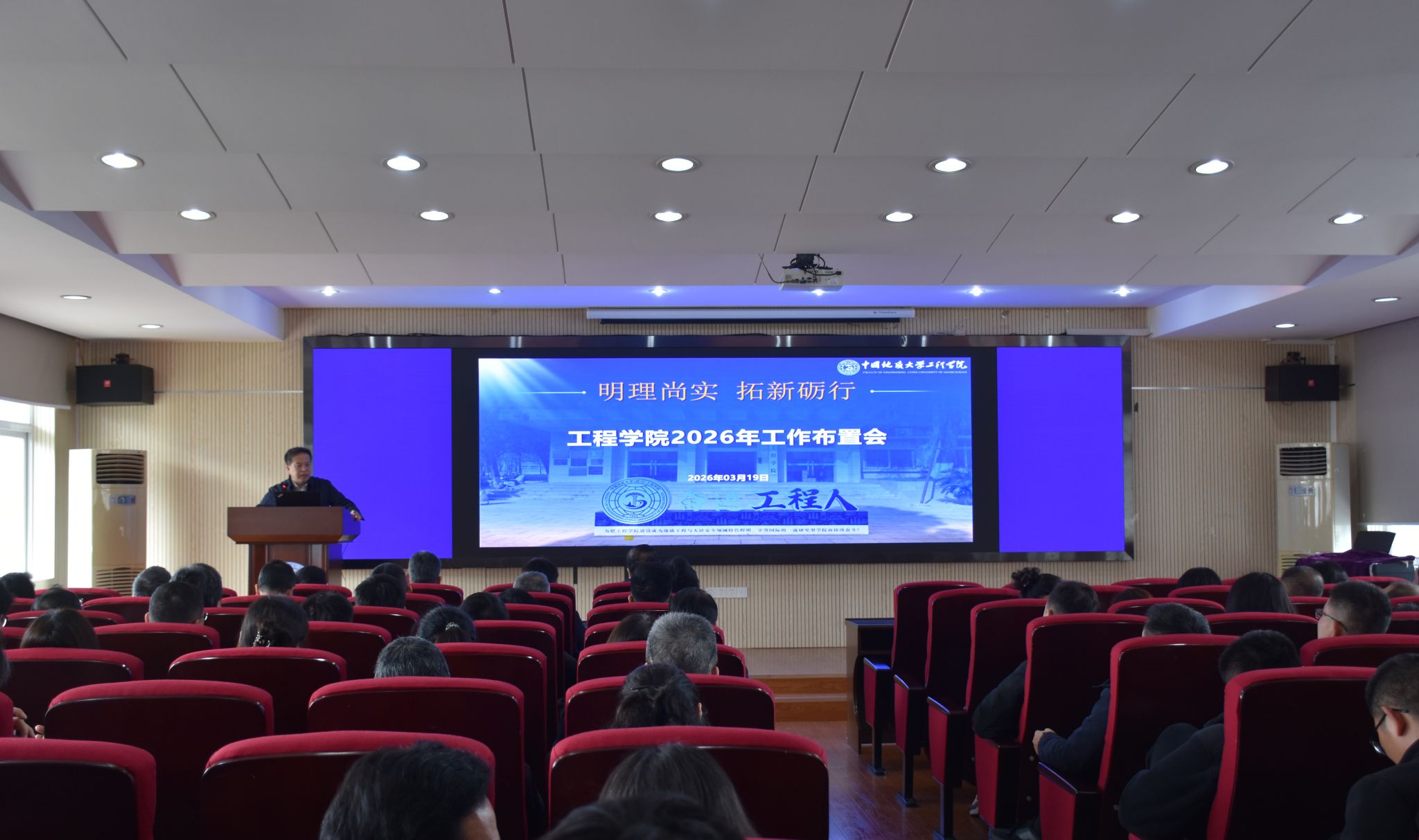 王亮清院长结合学院建设和事业发展的实际,对学院各项工作进行了部署:一是加快推进地质工程领域国家级、省级平台筹建;二是专业提档升级,培养中国式现代化需要的、可持续发展的拔尖创新人才;三是人才提质增量,加大力度引培战略科学家、学科领军人才和青年科技人才,聘请100位大国工匠、卓越工程师、高技能人才全方位参与学科建设与人才培养,构建一流校企导师团队,建设150家地质e站,打造20家专业博士人才培养基地,力争"十五五"末年均科研经费突破2亿元;四是科研创新增效,面向国家重大战略,锚定国家重大工程,发挥我校多学科优势,与知名企业深度融合,开展多学科交叉科学研究与社会服务。