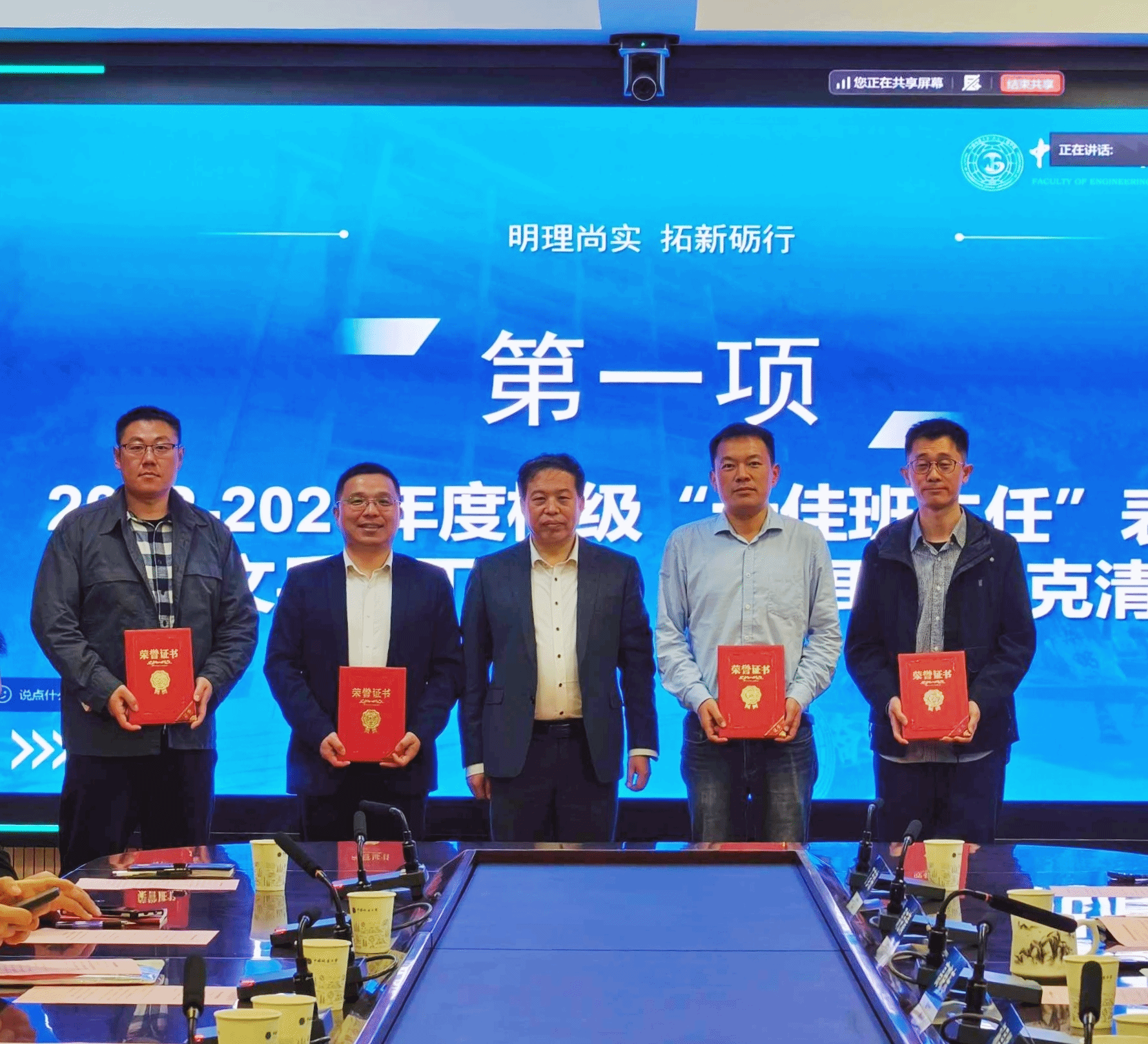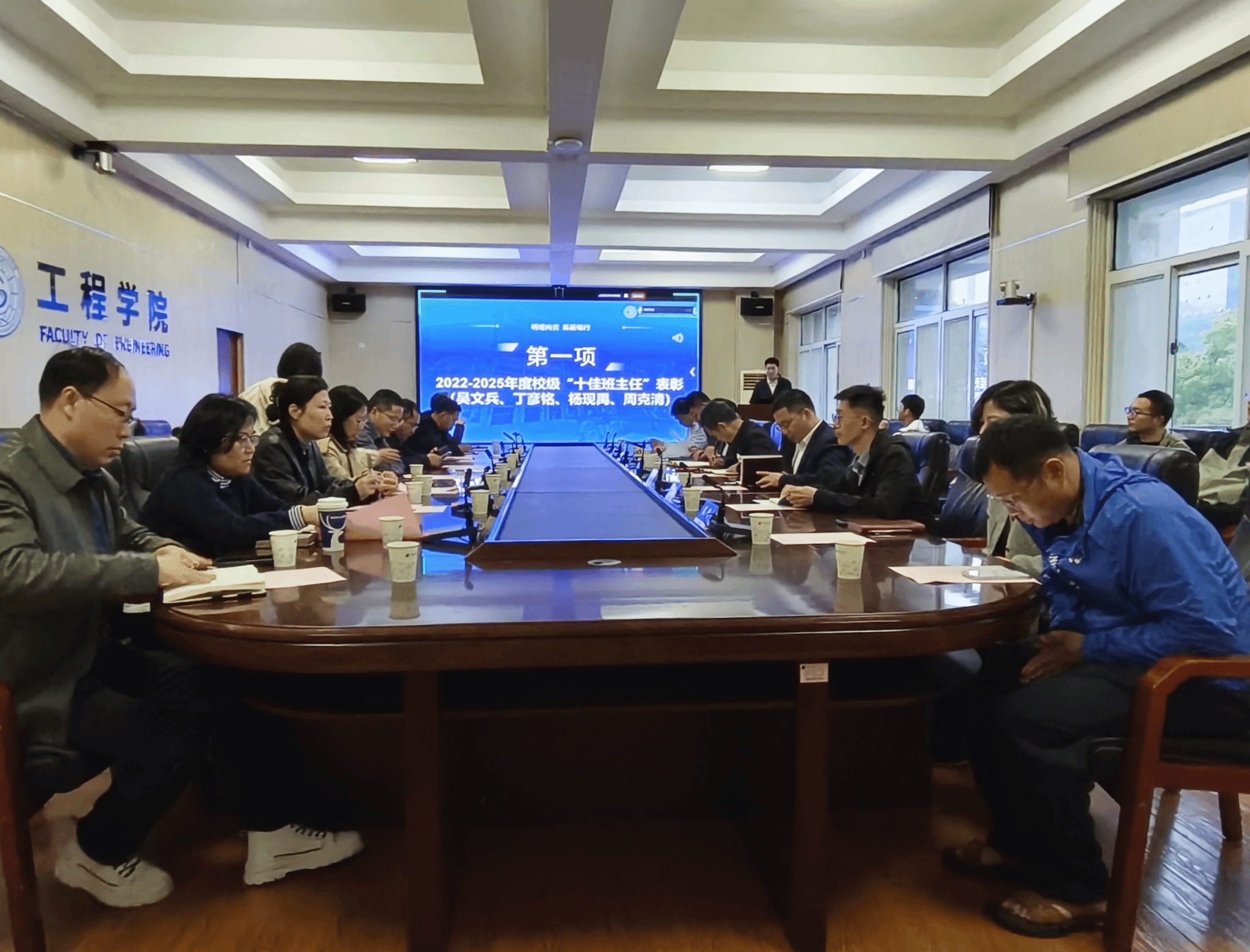 会议伊始,学院对2022—2025年度校级“十佳班主任”进行表彰,吴文兵、丁彦铭、杨现禹、周克清四位老师获此殊荣。党委书记杨昌锐为获奖教师颁发荣誉证书,高度肯定了四位老师在学生思想引领、学业帮扶、日常管理等方面的突出贡献,同时勉励全体班主任以先进典型为标杆,立足育人岗位、深耕立德树人,切实履行好班主任职责。