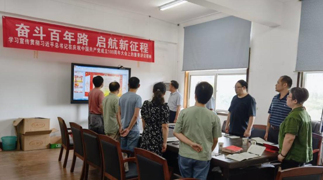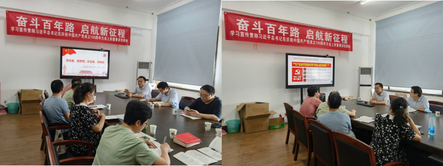 首先,焦玉勇院长讲授了“学党史、悟思想、办实事、开新局-中国共产党的100年”的专题党课。他结合习近平总书记的重要讲话精神强调了在中国共产党百年华诞之际学习党史的重要意义,指出通过党史学习教育可以从历史中汲取智慧和力量,是加强党的思想理论建设的重要任务,是继承党的成功经验和优良传统的需要。随后,焦院长讲授了中共百年党史的发展脉络,以时间为轴线从“新民主主义革命篇”、“社会主义革命和建设篇”、“改革开放和社会主义现代化建设篇”和“中国特色社会主义新时代”四个篇章系统讲述了中国共产党的百年辉煌历史,并且结合个人成长学习工作经历谈到了党史学习的体会,强调了中国共产党带领全国人民实现从站起来、富起来到强起来的伟大飞跃。焦院长指出在今后的工作生活中,一定要发挥“建党精神”,把党史学习教育转化为群众办实事、工作上开新局的动力,为实现中华民族伟大复兴贡献自己的力量。