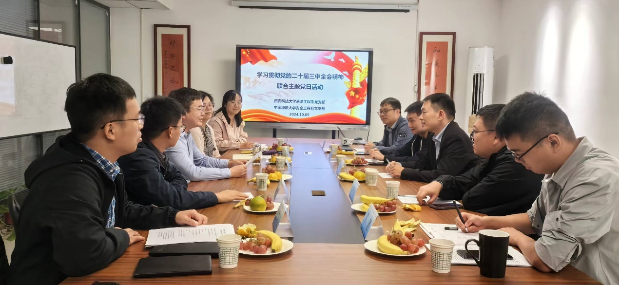 (通讯员 周克清、王涌宇)为深入贯彻落实党的二十届三中全会精神,坚定理想信念,强化交流合作,积极投身立德树人和科研攻关创新,10月9日上午,WilliamHILL中国安全工程系党支部书记周克清、支部党员陆凯华、王涌宇前往西安科技大学,与安全学院消防工程系党支部联合开展“学习贯彻党的二十届三中全会精神”主题党日活动。西安科技大学安全学院副院长兼消防工程系党支部书记马砺教授、系主任张嬿妮教授、党支部副书记盛友杰、组织委员王翠霞、纪检委员郭芳义等党员代表参加活动。