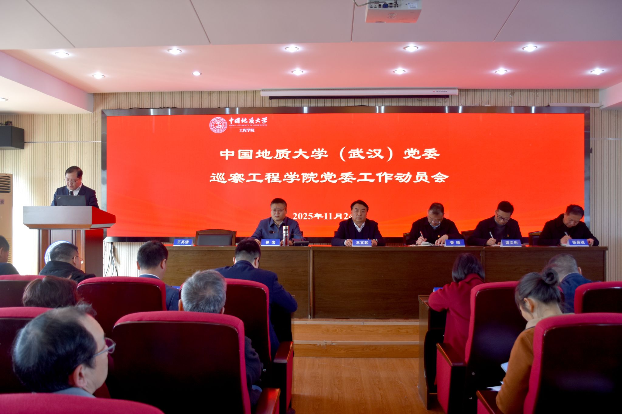 王文起受学校党委巡察工作小组委托提出工作要求,他指出,本次巡察的主要目的是深入学习贯彻党的二十大、二十届历次全会和全国教育大会精神,全面落实统筹推进教育科技人才体制机制一体改革的要求,就做好此次巡察工作提出三点意见,一是提高政治站位,深刻理解政治巡察的重要意义;二是压实责任链条,以巡察为契机推动事业高质量发展;三是坚持同题共答,全力支持配合巡察组开展工作。