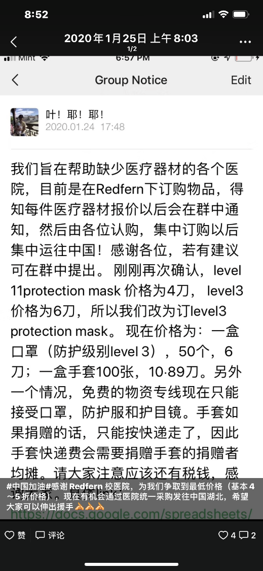 图2 詹威威、叶红丽夫妇为国内募集物资