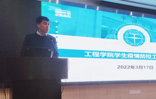 高晓东作主题讲话。他从新冠肺炎对人体的危害和学校勇担社会责任两方面强调了学校学院为什么对新冠肺炎疫情防控工作高度重视。随后,他通过传达学校防疫政策、讲述学校防疫故事等方式,生动细致地解读了“学校为什么要严格做好进出校门管控工作”、“ II 级响应期间教职工和中小学生为什么允许进出校门”、“为什么学校要坚持给师生做核酸检测”等学生普遍关心关注的问题,倡导全体学生要聚焦主业、聚焦发展、聚焦未来,在疫情防控常态化背景下,牢牢抓住思想道德水平和学业科研水平“双提升”目标,全面实现厚德成才。